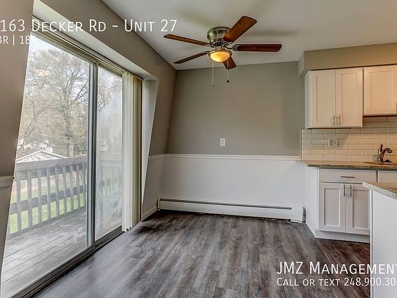 Welcome to the beautiful Z on Decker Apartments conveniently located in Walled Lake, MI 48390. Boasting between 850 and 1,000 SF depending on the floor plan. Completely updated inside with all new vinyl plank flooring in the updated kitchen with new cabinets, granite counters and most units have stainless steel appliances and dishwashers. Freshly painted throughout and award winning Walled Lake School District, your own private storage unit, large backyards, and coin operated laundry machine in all basements. We allow cats. Please inquire for the additional fees associated with a pet. Z on Decker is nestled minutes from downtown Walled Lake in the heart of Commerce Township. It is surrounded by lakes, and is minutes from major Highways (M5, 696, 275, 96), Walled Lake Central, and Twelve Oaks Mall. SECOND FLOOR UNIT