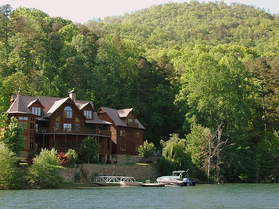 Built in 2007, this luxury estate sits on about 0.60 acres amidst the Nantahala National Forest on the banks of pristine Lake Santeetlah. As you approach the home, it is easy to see that each season holds new surprises in landscape treasures and natural beauty on these easy to maintain grounds. The wildlife and sunrise/sunsets will delight. This masterpiece mixes a sophisticated design and stunning customizations with finishes selected from around the world. An open floor plan, outdoor living areas and large windows give this home the feel of a secluded mountain estate in a private, serene setting. As you enter the home through the double front doors an expansive antler chandelier draws your