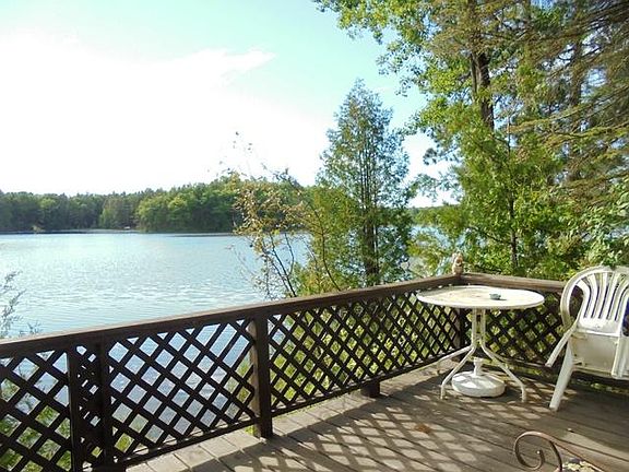 Delightful 50' waterfront cottage on Perry Lake. Use seasonally or year round. Interior with knotty pine, open floor plan, beautiful view of the lake out the living room window, fireplace with insert, three season room giving additional square footage, utility/mudroom with storage, attached garage. Spend time relaxing on the waterside deck.
