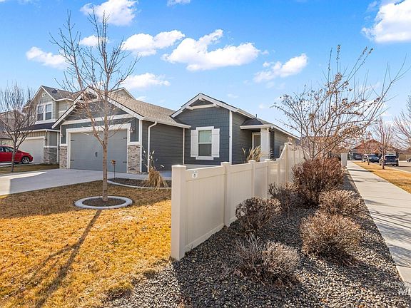 Location, Location, Location! Nestled right in the heart of the Treasure Valley. This home is better than new and ready to welcome you. Just minutes from the freeway or Costco, and a quick 15-minute drive to Boise or Nampa, this prime spot offers the perfect blend of convenience and charm. Step inside this beauty and discover a home designed for modern living with thoughtful upgrades at every turn. The kitchen boasts upgraded countertops, sleek stainless-steel appliances, and a Reverse Osmosis water filtering system for the purest hydration. Breathe easy with Built in Humidifier in the HVAC—perfect for a healthy, comfortable lifestyle. The living area flows effortlessly, bathed in natural light, and opens to an extra-large patio complete with a cozy fire pit—your personal oasis for entertaining or unwinding under the stars. Situated on a generous corner lot, the fully landscaped yard is a masterpiece of curb appeal, with lush greenery and plenty of space to enjoy.