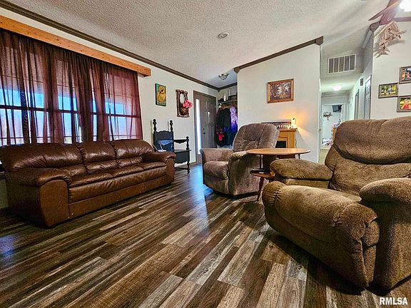 Discover serenity on the outskirts of West Frankfort with this charming home offering the perfect blend of comfort and tranquility. Situated on a spacious 3 plus acres, this property features your very own, well stocked, pond, ideal for relaxation and recreation. Inside, find ample living space with an open concept floorplan, perfect for modern living. The kitchen boasts a breakfast bar, providing a convenient spot for casual meals or entertaining guests. The home also features a huge den with a wet bar and half bath, offering a versatile space for relaxation and gatherings. Enjoy the convenience of 3 bedrooms, 2.5 baths, and a large 3-car garage, providing ample storage for vehicles and more. Stay comfortable year-round with an attic fan to circulate fresh air on pleasant days, and rest easy knowing the roof is just 2 years old and the HVAC system is well-maintained with a maintenance program in place. Don't miss the opportunity to make this peaceful retreat your own. Call today to schedule a viewing and experience the best of country living on the edge of West Frankfort. The sellers are motivated to sell and will offer a flooring allowance.