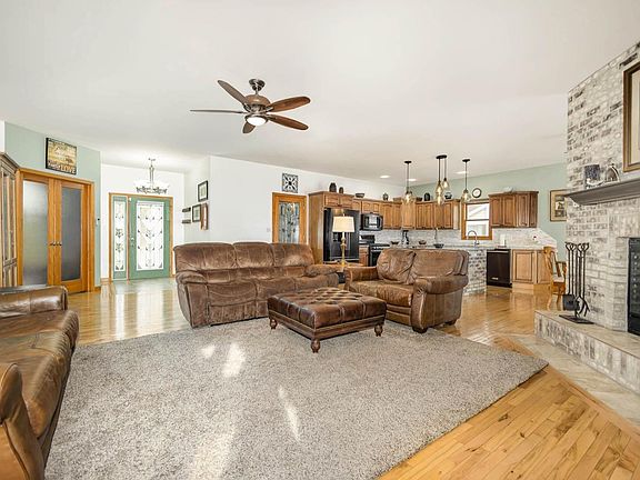This open concept, custom built ranch home has plenty of space for everyone. Entryway with stained glass welcomes you. Main floor has 9ft ceilings, hardwood floor and new carpet. Open concept living space is is made up of Living Room with a real wood burning fireplace, Kitchen with, maple cabinets, granite countertops and island, dining area with sliding glass doors opening to the large covered deck. main Bedroom, with access to deck, features a tray ceiling, Bath with custom shower, and a custom closet. An office with plenty of natural light. Main floor laundry leads to the 3 Car Garage. This ranch has a full walkout basement with a finished living area,9 foot ceilings, a bedroom, and a full bathroom. 2 sets of sliding glass lead you to a beautifully landscaped fenced in yard. Enjoy the patio while watching all nature has to offer The hot tub is under the deck. Anderson windows and doors, 90% efficient gas furnace, an on demand hot water heater are just a few of the upgrades.