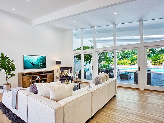 Unique Single-Story Contemporary luxury living home. 4 Bedroom plus an office, 3 baths in the most desirable location. Live amongst celebrities just minutes from the gated Beverly Park Estates & near the iconic Beverly Hills Hotel. Renovated w/ the finest materials. Welcome entry, magnificent high ceiling w/ barn beams, exquisite open dining & family room lead to walls of glass that open up to a covered patio, very spacious & private flat paradise backyard w/ dazzling heated pool, built-in wood burning barbecue & pizza oven. Perfect indoor/outdoor living & great for entertaining. Stunning new chef's kitchen w/ Viking stainless-steel appliances & top-of-the-line imported Italian cabinets. Laundry room w/ sink & lots of cabinets. Grand master suite w/ two separate dual walk-in closets and private office. Master bath w/ jetted spa tub & separate large shower w/ double sink. Three additional bedrooms & baths. Warner Avenue Elementary school district!