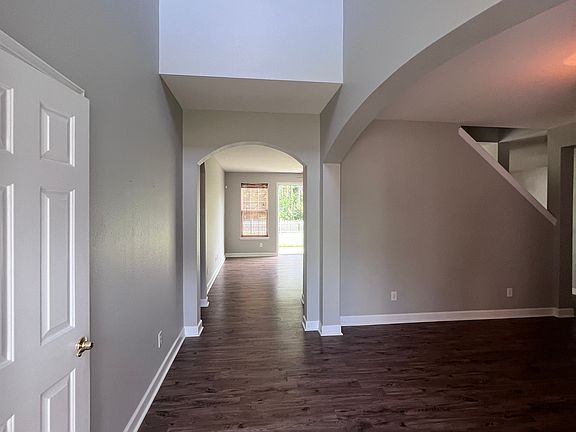 4 bedrooms and 2.5 bathrooms. Primary suite downstairs. Large bonus room and 3 additional bedrooms and a bathroom upstairs. Open floor plan with large kitchen. Laundry room with access to backyard. Flex room on first floor can be used as formal dining/study/playroom. Large fenced backyard backing to woods! Landlord pays for trash removal. Tenant is responsible for water/sewer, Electric, cable/internet and landscaping. Absolutely NO SMOKING. Pets require nonrefundable pet deposit.
