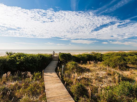 Come see this 2-bedroom beach villa located in West Beach Village that is just steps away from Kiawah's 10 miles of beach and within a short walk to the Cougar Point golf course, the Cougar Point clubhouse, and the property owners' exclusive Sandcastle clubhouse. This first-floor villa is bright and full of light, and the open layout comfortably accommodates the family and visitors with a spacious living and dining room. Tiled flooring adjoins the kitchen which features a sizable pantry and a breakfast bar. The primary bedroom is a relaxing retreat with a comfortable sitting area and has an en suite bathroom with granite vanity. Both bedrooms have sliding glass doors that open to the deck. Offered furnished, this convenient, move-in-ready villa has a picturesque boardwalk just outside that invites residents and guests to spend their days on the expansive beach just around the corner from the front door. It is located within a short bike ride to the shopping and dining of Freshfields Village and a quick drive to historic Charleston. All information is deemed reliable but not guaranteed and should be independently verified.