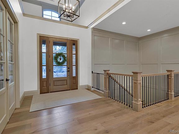 Perfectly positioned in the prestigious Pinon Soleil neighborhood, where ornamental gambel oak and mature pines offer seclusion and tranquillity. Constructed in 2018, with no expense spared and unrivalled attention to detail, its enchanting interiors embrace you with an undeniable warmth, a celebration of custom elegance. Situated on a peaceful and private 0.9-acre lot and decorated in a symphony of soothing neutrals, everything you need is right where it should be. Featuring soaring ceilings with Douglas fir beams, European white oak floors, a stacked limestone fireplace, gourmet kitchen accented in Taj Mahal quartzite, home theatre, and smart house technology - step inside and fall in love with everything this stylish home has in store! The main-floor master bedroom is a soothing sanctuary and promises to be your restful oasis. Expect the lower level to be a popular place for gathering with groups large or small! The rec room with its coffered wood beam ceiling is a sprawling entertaining space with a superb wine display, extraordinary granite wet bar. When the day is done, unwind with your beverage of choice by the stacked limestone fireplace, featured in the center of the composite deck. Tucked away in a private cul-de-sac and situated less than 10 minutes from downtown Castle Rock and 20 minutes from the Denver Tech Center, the residence is secluded in a peaceful luxury community. Experience this premium property which transcends contemporary elegance!