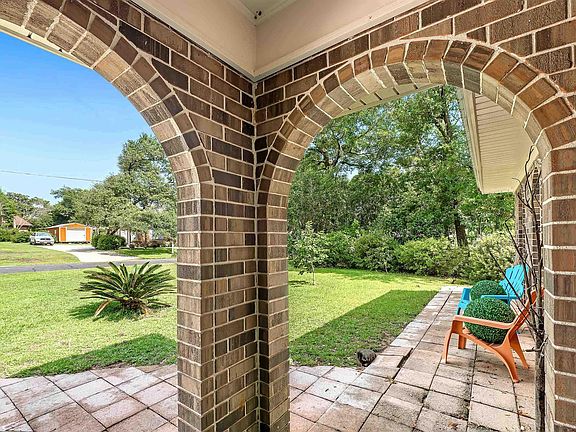This brick home is located on the bay side (indirect) of Spanish Cove and is spacious enough for entertaining. The kitchen is centrally located and is separated from the large dining room by a bar which has plenty of room for additional seating. There are 2 living areas, both offering plenty of space. The primary bedroom and 2nd bedroom are on opposite sides of the home, allowing for more privacy. The primary bedroom features an en suite bathroom with a built in cedar cabinet. There is luxury vinyl plank throughout with the exception of the foyer, kitchen and bathrooms. The home features 2 wooden decks, one attached and one unattached. The unattached deck connects to a storage building on one side and a screened in gazebo with a functioning hot tub on the other side, all nestled in the fenced back yard. All kitchen appliances convey and all are stainless except the dishwasher. Spanish Cove offers many amenities and is approximately 25 miles from the beaches of Gulf Shores or Pensacola. Some of Spanish Cove's amenities include the following: 24 hour security, Cove Clubhouse and RV Clubhouse, pool, pier, beach area, tennis courts, shuffle board court, horseshoe court, picnic area and playground areas. The Cove Clubhouse overlooks Perdido Bay and offers a full kitchen, dance floor and outside deck with grill. It can be reserved for private functions by residents at no charge. There are also numerous special events held there throughout the year. The large pool also overlooks Perdido Bay and can be used year round. During the cooler months it is covered and heated. Fishing is allowed off the pier or you can sit under the gazebo and just enjoy the scenery. Check out shuffleboard or horseshoe equipment and play a game of either near the pool. Tennis courts can be used for fun and there are also scheduled matches. Picnic areas are available near the clubhouse and there is a playground near the Cove and RV Clubhouse.