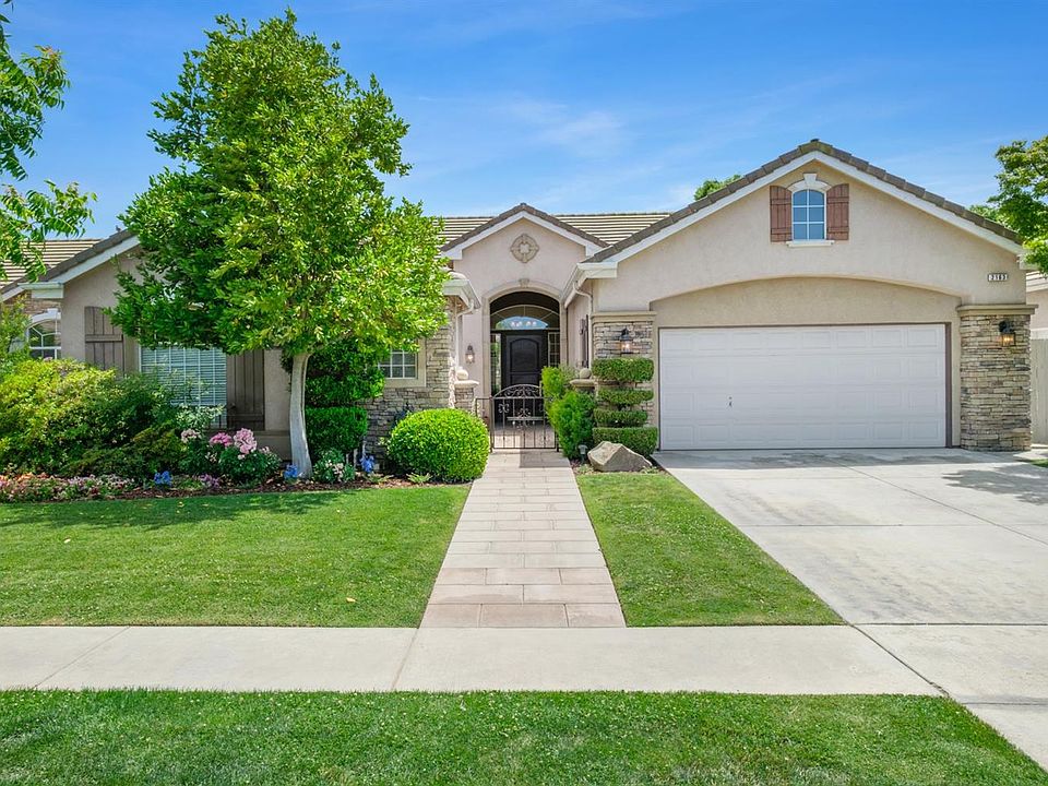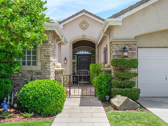 Amazing single level home with a private guest house (casita) in desirable & gated Fontana del Fino. This stunning beauty in Northwest Fresno is ready for immediate occupancy with a freshly painted interior and new carpeting/pad. This optimum North/South orientation features a stone front, courtyard entry with fountain leading to a private one bedroom/one bath guest suite! The main home features two bedrooms; two baths; large Living/Dining Room with fireplace which is shared with the Family Room; separate room with french doors which could be a Formal Dining Room, gym or office; spacious light and bright kitchen with walk-in pantry & pull out kitchen drawers; indoor laundry room with deep basin leading to the 2-Car garage! Large Master Suite with oval tub, stall shower & oversized walk-in closet! Central Vac System throughout. Step into Paradise in the gorgeous & lush backyard with Koi Pond and fountain.