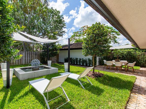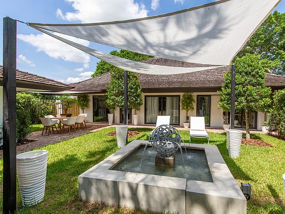 This stunning, waterfront villa has been tastefully upgraded with a sophisticated, contemporary design, featuring a main house with 1,344 living sq ft, 2 large bedrooms, 2 full baths, wrap-around porch, courtyard and detached one bedroom guest quarters. Thoughtfully outfitted with designer finishes, this gorgeous home is offered fully furnished. The open concept kitchen features white shaker cabinetry, marble counters and a large island with bar seating. The combined dining and living space features vaulted, ship-lapped ceilings and two complete walls of glass sliding doors, presenting unobstructed views of the water. Enjoy multiple areas to dine, relax and take in the lush scenery, including the partially covered and fully screened wrap-around porch, or the spacious front courtyard equipped with a beautiful water fountain. The one-bedroom guest suite is currently in the permitting process.