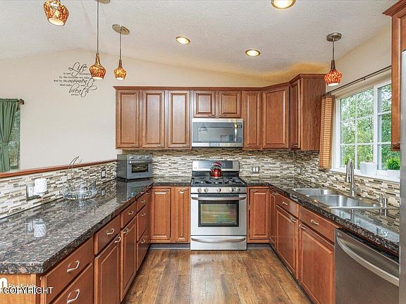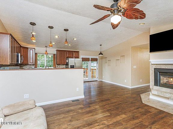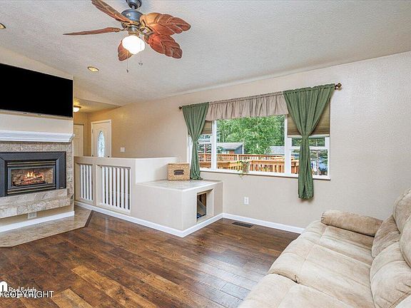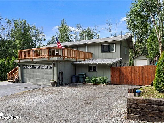 BACK ON MARKET THROUGH NO FAULT OF THE SELLER OR HOME! APPRAISAL IN AT $490,000, BRAND NEW 4 BEDROOM SEPTIC INSTALLED AND COSA COMPLETE! READY FOR A QUICK CLOSE! Welcome to this meticulously maintained and updated home, a true testament to pride of ownership! Convenient location just 20 minutes from JBER. This property offers a blend of comfort, accessibility and mountain views. The interiorshowcases numerous upgrades including ADA compliance on the lower level, ensuring a home that is inclusive and accommodating. 2 living spaces, 1 up 1 down. Paved driveway, and extra RV Parking. Multiple outdoor spaces, including a rooftop deck, back deck, patio, shed and fully fenced in backyard providing ample room for relaxation and entertainment. Inside, the gas fireplace creates a cozy ambiance, while the vaulted ceiling adds an airy and spacious feel. The garage boasts additional workshop space, perfect for hobbyists and DIY enthusiasts. This house is truly a gem, offering a harmonious blend of modern upgrades and functionality.