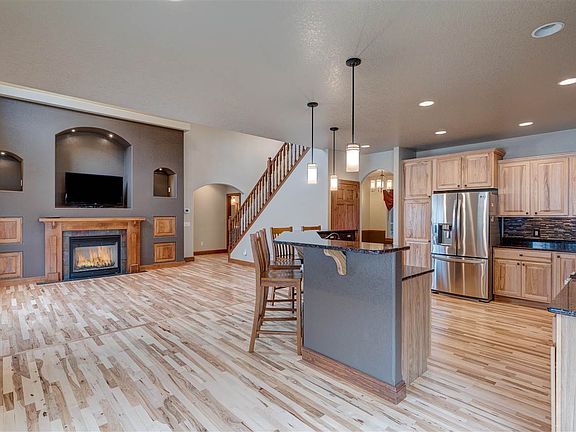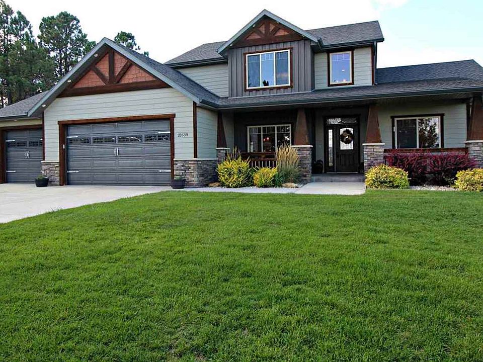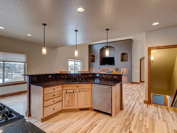 This high-quality home has all the bells and whistles, including a brand-new 40x56 shop with power and security system for all your toys! MDU will plumb the shop for gas in April. You will appreciate the private, wooded 3 acres in a quiet neighborhood away from all the hustle and bustle of city noise. As you enter through the gorgeous leaded-glass doorway into the spacious slate-tiled foyer, you will be drawn to the open concept great room with vaulted ceilings, new hickory flooring, a built-in entertainment center with gas fireplace and an abundance of natural light. The kitchen features granite countertops, reverse osmosis, high-end appliances, including a new dishwasher, hickory cabinets and a dining area that walks out to an open patio and newly fenced yard. The kitchen ushers you into an adjoining room that can be used as a formal dining room, office, music room or sitting room. The main level boasts a large master bedroom with trayed ceilings, master bath with jetted tub, separate tiled shower, double sinks and a very spacious closet. The main floor laundry is conveniently located off the kitchen and doubles as a mudroom. The upper level has two bedrooms that share a bathroom with double sinks and separate shower/lavatory. The lower level walk-out has a large, carpeted family room with a custom fireplace designed by Nature's Creations Kustom Woodworking, using local scrub oak for the mantel, shelves and trim. Two large, additional bedrooms and a bath complete the garden level basement. Additional features include six-panel solid core doors, finished 3 stall heated garage with shop vac and hot/cold water and a whole house generator as backup power. Sale includes all appliances, two flat screen TV’s that fit into living room and master bedroom cutouts and 4 barstools.