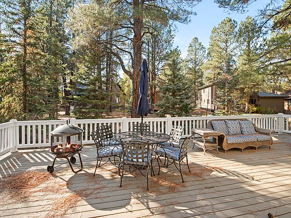 Lot 597- SINGLE LEVEL and NO stairs. This 3 bedroom Pines Cottage sits back and off the street and has an unparalleled, oversized deck you won't find in any other cottage. The great room is open, has a gorgeous stone fireplace and tons of natural light. The kitchen has an eat-in area, breakfast bar and perfectly positioned adjacent to the great room and deck. Unlike many homes, this home IS equipped with Central Air Conditioning. Close and convenient to the canyon clubhouse and all the amenities.