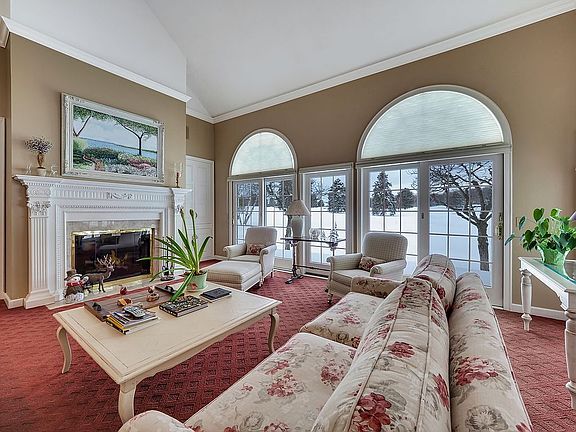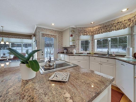 This delightful home boasts a sweeping golf course view with sunsets beyond! There is plenty of room for all in this nearly 3000 square foot, 4BR/3BA home. Overlooking the fairway of #9 of the Farms course, you can watch the golfers end their round and you are only a 1 hole stroll away from the Club House. This home has an open floor plan with a large, bright kitchen, granite countertops, and a spacious nook for dining which overlooks the golf course. It is open to the grand great room with plenty of built-ins and a large wood-burning fireplace (which could be easily converted to gas). Maple floors are in the dining room & foyer and under the living room carpeting. The house is finished with crown moldings and attractive finishes throughout. Boasting 2 master suites, this home has one conveniently located on the main floor where the laundry is also located. Upstairs is a second master bedroom with en suite bath with a whirlpool tub. Both master baths feature dual sinks and a make-up vanity. Two other upstairs bedrooms share a bath. This home has been well-maintained. Furnace was new in 2015; hot water heater in 2012. The exterior was completely painted in 2019; roof was replaced in 2015. There is a $10,000 initiation fee due to Club at closing; Monthly Club dues are $424 - covering all Birchwood amenities - golf, tennis, pickle ball, bocce, swimming pool, fitness center, groomed cross country ski trails, snow shoeing and hiking trails, numerous social events, dining facilities, etc.