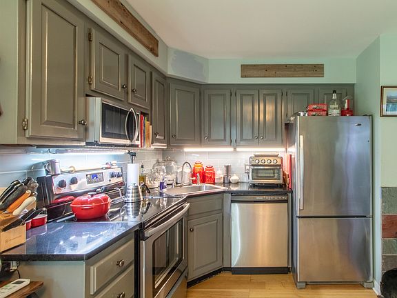 This top-floor end-unit condo is all set for you to make it yours! Time to pack up, settle in, and jump on the mountain bike trail from the corner of the lot. The slopes at Burke Mountain are just a stone’s throw away. With its cozy vibes, peaceful surroundings, and top-notch maintenance, this place is a gem. Plus, it features a charming covered porch, open kitchen/dining/living area with woodstove, and it comes fully equipped with appliances.