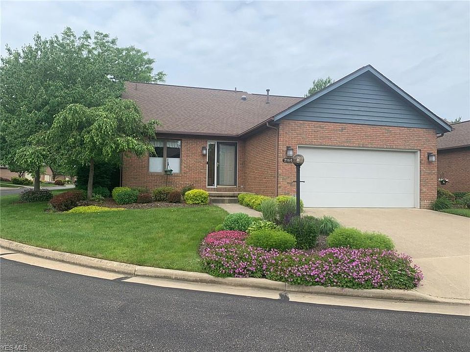 Updated condominium at 2164 Prestwick Drive Uniontown, Ohio in the City of Green. Foyer entry offers ceramic tile floors that carry through to the spacious kitchen which features a vaulted ceiling, granite counters, open soffit cabinets, a pantry, a planning desk and is fully applianced. The fireplaced great room/dining room areas opens to the sunroom which gives access to the private patio and backyard. A first floor master suite has a walk-in closet and master bathroom suite with double sinks, granite counters, a soaking tub and separate shower. A second bedroom with a walk-in closet, and a second updated full bathroom can be found upstairs, where you will also find a large loft sitting room. Hurry, this one wont last!