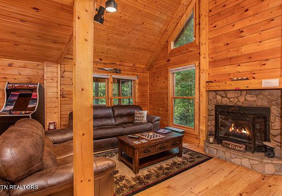 Countless updates have been lovingly invested into this cabin, encompassing interior and exterior staining, new light fixtures, refreshed deck railings, a water heater, water filter system, fireplace logs, and bear-proof trash cans.