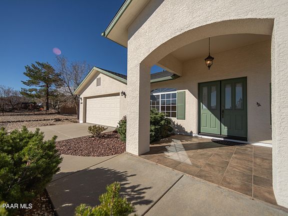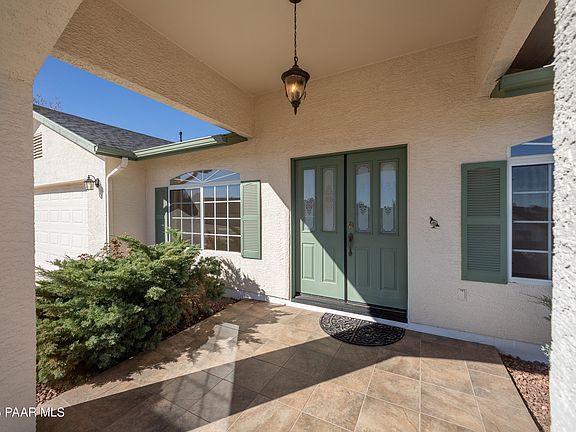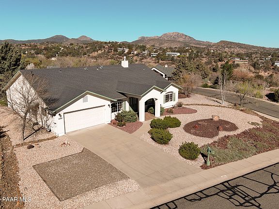 Well cared for home with convenient location, beautiful rich oak hardwood floors, vaulted ceiling with solar tubes, and arched doorways & windows. The recently updated kitchen featuring gorgeous granite countertops and sleek appliances adjoins the formal dining room with tray ceiling. There is a bay window/breakfast nook offering private views to the west and a screened-in patio with a breathtaking view of Granite Mountain. The split floor plan flows smoothly with rooms having their own entrances to the patio for outdoor living. The primary bedroom features a generous sized walk-in closet, dual vanity, and a luxurious shower with multiple body sprays. Practical built in bookshelves face the gas fireplace and invite a quiet cozy night in the den. Priced below recent appraisal.