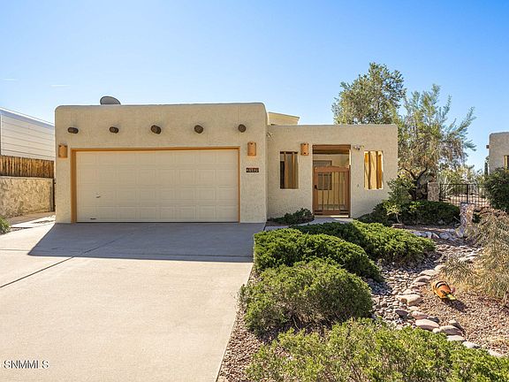 Move-in ready gem in the desirable Pines community in Las Cruces! This charming 3-bed, 2-bath Southwestern-style home offers vaulted ceilings in the living room, kitchen, and entry, filling the space with natural light. Enjoy a spacious kitchen and open flow to the living area, featuring a cozy gas-assist corner fireplace. Outdoors, relax under the extended covered patio with misters, take in the naturalLandscaped backyard, and grill with the built-in gas stub. Recent updates include parapet maintenance and exterior paint (2025), TPO roof (2017), solar screens on lower windows, and beautifully stained/sealed vigas. No shared walls -- rare for the area!
