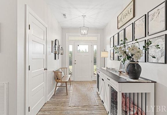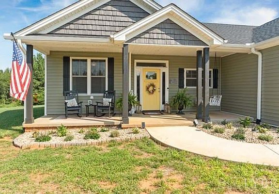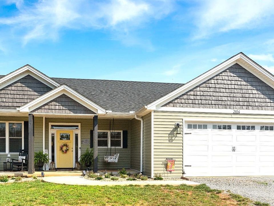 Newer home situated on nearly 5 acres, offering a serene lifestyle while remaining conveniently close to various amenities in Lynchburg. Foyer leads into an open-concept design, ideal for gatherings. The main living area encompasses the kitchen, dining, and living room. Kitchen features shaker-style cabinets, a stylish tile backsplash, open shelving, stainless steel appliances, granite countertops, a butcher block island with bar seating, and a spacious walk-in pantry. The master suite includes an en-suite bathroom w/ walk-in shower, double sinks, and walk-in closet. There are two additional bedrooms and another full bath. Throughout the home, you'll find LVP flooring, 9-foot ceilings w/ fans, and vinyl blinds. Additional highlights include a separate laundry room and an oversized attached garage. The back patio is perfect for evening relaxation, and the fenced backyard adds to the appeal. If you're seeking the ideal one-level living experience, this is the home for you!