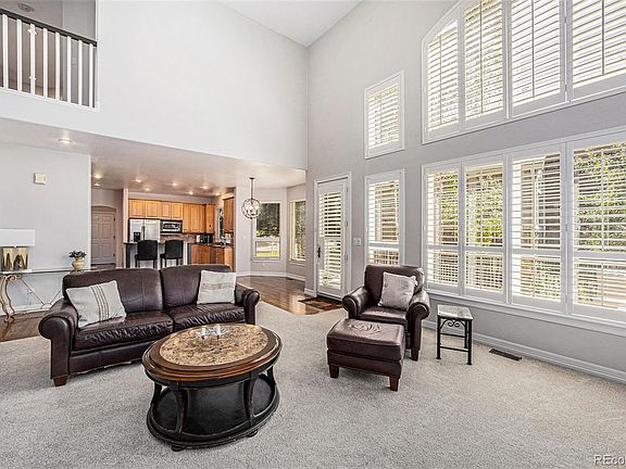 Gorgeous Saddle Rock home with space galore and located on a desirable corner lot in a prime golf community. A tree-lined street & beautiful landscaped front yard provide an inviting welcome into this home’s light and bright open layout. Both formal and informal living spaces are great for everyday living or easy entertaining, and are enhanced with gleaming hardwood floors and plush carpeting, 2-story family room ceilings, a gas-burning fireplaces, and built-ins! Gourmet chef-worthy eat-in kitchen boasts ample 42” cabinetry, double ovens, desirable gas burner cooktop, sleek granite countertops, and a large center eat-in island for extra seating and easy meal prep. Main-level home office with French doors and built-ins is perfect for working from home. Four spacious bedrooms await upstairs, two which share a Jack-n-Jill bath, and another with a private en-suite, perfect for guests. The primary retreat has a luxurious 5-piece bath with a relaxing Jacuzzi tub! More living space is found in the finished basement with extensive U-shaped recreation room that can easily be divided into separate living spaces. At the bottom of the stairs enjoy slate floors with a large wet bar, and an open area with an abundance of natural light, carpet floors, & cozy gas-burning fireplace. Additional bedroom in the basement with an attached bath is great for guests’ privacy and unfinished space for storage. 3-car attached garage with Tesla EV Wall charging station, and a surge protector installed in circuit breaker. Peaceful backyard with a wrought iron fence, mature trees, and a large deck. HVAC and AC are 2 years old. New interior paint throughout, and newer exterior paint. Close to many trails to explore, even leading to picturesque Aurora Reservoir with many amenities for the outdoor enthusiast. Walk to award-winning Grandview HS, community park with playground, and close to Southlands, & easy access to E-470!