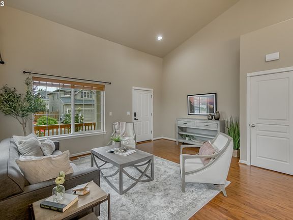 This property has a well designed traditional floor-plan offering space for a variety of needs! You enter into generous sized living & dining rooms with soaring vaulted ceiling. Kitchen island with additional seating, granite, stainless steel appliances, gas fireplace in casual family room with built-ins. Bedroom & full bath on the main level is ideal for guests who don't want to use stairs. The primary suite offers large walk-in, double vanity sinks and nice size vanity. The large loft area adds to the versatility of this design. Recent updates include NEW carpet throughout and NEW paint. This home has central A/C and includes the washer/dryer. The lot has a fully fenced backyard with covered patio, garden beds and sprinkler system. Copperleaf neighborhood is aligned to good schools and close proximity to Intel, Nike, shopping, dining, bus-line and recreational park. Come take a look at this great value! Open House Sat 10/14 & Sun 10/15 from 1:30pm - 3:30pm.