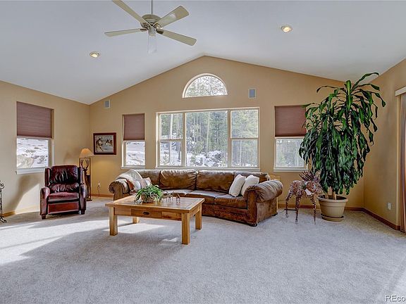First time on market since construction in 1998. Beautiful custom home in idyllic setting nestled on 14.35 acres ofi aspens, pines and rock outcroppings. Crushed asphalt driveway, stamped concrete and trex decking, Massive Oak door leads you into soaring entry with spiral staircase. Flooded with sunlight, this home has it all; central vacuum, laundry chute, speaker system, dual hot water heaters, three-car garage with coated flooring. Hardwood floors grace the dining and kitchen areas with cupboards galore, pantry, wine rack and chiller. Lovely deck looks toward the mountains and aspens and has propane line to connect your grill. The upper level master suite has private deck, fireplace, 5-piece bath and walk in closet. Upper level office could double as nursery. Lower daylight basement accesses stamped concrete patio and hot tub. There's a dog run for your pups, trails, a flagpole and basketball stand and hoop. A slice of heaven located in close-in Conifer. Just minutes to shopping, open space parks and RTD. A rare opportunity awaits.