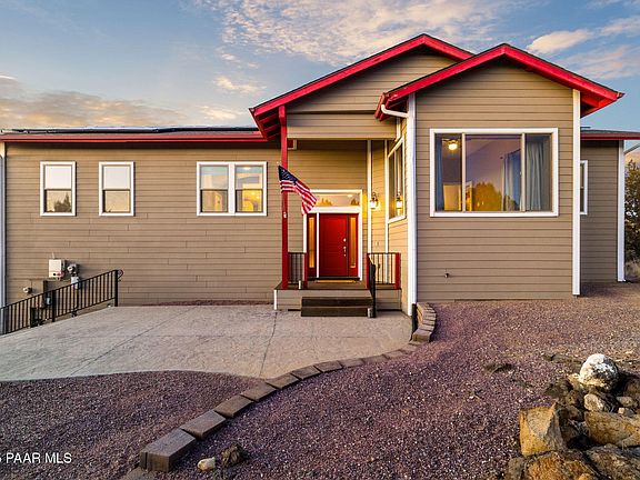 Do you seek acreage, privacy, peaceful surroundings, a place for your toys, and STUNNING VIEWS? Then this beautiful home backing to the jaw-dropping majesty of the Verde River Gorge is waiting for you to come home. Tucked back from the road on 4.05 acres, you'll immediately notice the 2000 sqft. RV garage as you turn onto the gravel driveway from the paved County Road. Don't have an RV? The immaculate garage space can easily house numerous classic cars, ATVs, motorcycles, or bicycles. No motorized toys? Imagine a 2000 sqft. gym, man or woman cave, or perhaps a roller rink for the younger set (or younger at heart) - the possibilities are endless! Around the bend from the RV garage awaits a casually elegant 3 bedroom, 2.5 bath split level home, designed for fun and relaxation.