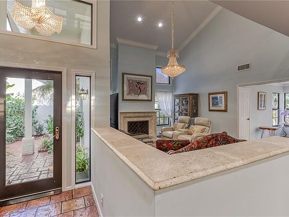 Enter this beautifully renovated Town Place home through the lovely landscaped private garden with fountain. The 4-bedroom bath 3 bath home features new impact windows, a 3-car garage and over 3400 square feet of living. Enter the home into a two-story living and dining area with skylights. The totally renovated kitchen features honed marble countertops, stainless appliances and plenty of storage space. The kitchen with eat in dining leads out to a landscaped backyard with water view. The first floor also has a study, the 4th bedroom & the third bath. A new banister & railings lead you to the split plan second floor. Two bedrooms & a bath to one side and cross the walkway is the remodeled primary bedroom and bathroom with new walk-in closet. gated community entrance & pool. 21646 Club Villa Terrace Improvements (information provided by the sellers.)