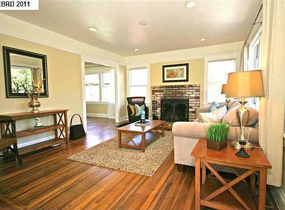 A delightful California Bungalow awaits you. This home is ready for its new owner. Upon entry you feel at home here. The welcoming living room has an abundance of light from the large picture window and two additional windows on either side of the cozy fireplace. Beautiful hardwood floors continue into the spacious formal dining room with an original built-in cupboard for all your best china! Two spacious bedrooms and an updated bath with a large soaking tub and separate shower are right off the dining area. The kitchen has miles of counter space and includes a nice cozy breakfast area. The washer and dryer closet is conveniently located here too. A French door leads to the relaxing deck and sunny backyard. A detached garage/studio/shed is towards the back of the property and would make a nice home office or art studio. A long driveway provides lots of room for multiple cars to park in tandem. A wood fence surrounds the property and give you an added feeling of privacy. This special home is in a great location. Nearby you have Whole Foods Market, Berkeley Bowl Market, Ashby BART, UCB, and the various shops, cafés and restaurants on Telegraph, College and Shafter Avenues. Great for the commuter with Highways 24/580/980 all easily accessible plus BART. Easy commute to San Francisco. For further information on this property, please contact Natalie Cuttler. We hope you will stop by an visit one of our Sunday open houses!