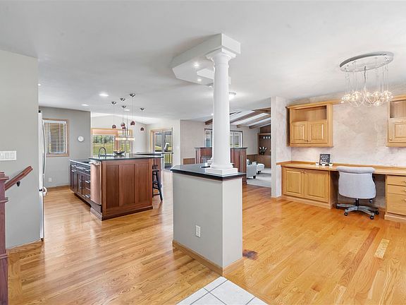 Welcome home to this spacious ranch on the NE side close to Pierce Elementary, Kennedy High School, parks, restaurants, businesses, and more! Step into the tile foyer which opens to the formal dining room with hardwood flooring and built-in desk. Hardwood flooring continues into the updated kitchen complete with cherry cabinets, granite countertops, tile backsplash, huge center island with breakfast bar, second island, and stainless-steel appliances including the elevated dishwasher, French door refrigerator, and hood vent. The kitchen flows into the daily dining room with vaulted ceilings, sliders to the deck, and French doors to the 4 seasons room. Also off the kitchen is the spacious great room with vaulted ceilings with wood beams and gas fireplace with surrounding built-ins. Convenient main level half bath and laundry room with cabinets and hanging rod off the 2 car garage. Retreat to the spacious primary suite with not one but two walk-in closets and spa-like en-suite bath complete with dual vanity with quartz countertops, tile shower, and jetted tub. 2 additional nice-sized bedrooms, one with vaulted ceilings, and second full bath complete the main level. The lower level offers plenty of additional space to make your own or use for storage. Enjoy the backyard from the large deck with built-in bench. Come see this spacious home in person!