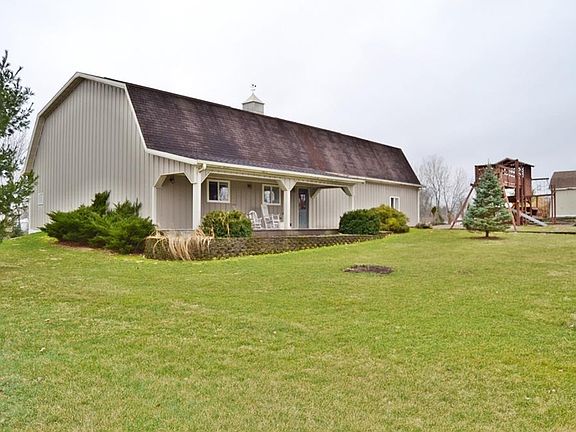 Amazing outbuilding with this well-maintained & updated home! This 3 bedroom, 1.5 bath home features an updated kitchen open to the living room, family room with study that walks-out to the covered patio, partial basement with laundry, heated attached garage and much more! Concrete drive-ways, large parking pad, oversized attached garage with heated workshop. Covered front porch (composite decking) & rear deck overlooking the large yard with playground! Custom 2592 sq ft building with separate driveway, concrete floors, 25x35' shop with HVAC, 25x35' loft, basketball half-court, cathedral ceilings, overhead lighting, workbenches, electrical outlets, hot/cold water, large overhead door, covered porch and more! Home and barn are connected to a propane whole-house generator! Updates in 2000 include: roof, front porch, expanded garage & added hanging furnace, kitchen, 6-panel doors, generator and exterior motion lights!
