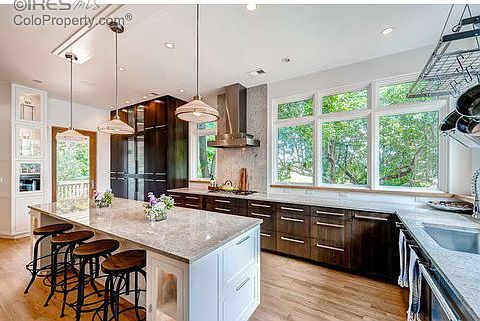 Gorgeous contemporary home in fantastic location on upper Dartmouth backing to NIST trails with mountain views! Upgrades throughout including 8KW solar panels and radiant in floor heat. One of the nicest looking homes in south Boulder! Entertain inside or out with beautiful kitchen, hardwood floors, custom built-ins and private outdoor spaces. Backyard includes deck with trellis cover, mature landscaping, walkout basement with flagstone patio. Oversized Garage for toys!Feeds top ranked schools.