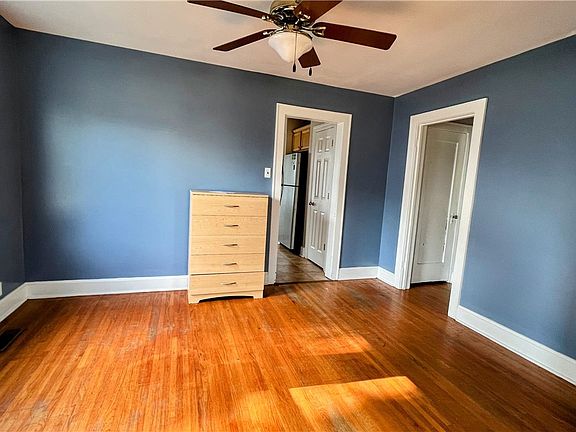Discover the charm of this 1.5-story bungalow at 2165 E Clay St in Decatur, IL. Boasting 4 bedrooms and 1 bathroom, the home features a kitchen with nice wood cabinetry and all appliances, a formal dining room, and two bedrooms on the main floor. Upstairs, you'll find two additional bedrooms with built-in shelving. Replacement windows throughout. The property includes a 1-car detached garage, a fenced-in backyard, and a 16x8 front porch. With a little TLC, this home has the potential to shine anew. Being sold AS-IS!