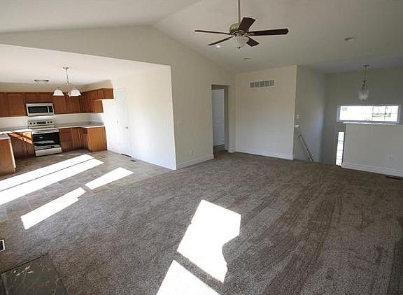 Fantastic new construction on large lot in super convenient location. This split foyer home has split bedroom floor plan (master on one side & secondary bedrooms on other side of living areas) plus MAIN FLOOR LAUNDRY! Must see open floor plan with large vaulted Great Room with beautiful marble surround gas fireplace including upgraded mantle. Fantastic kitchen has birch cabinets with crown molding plus upgraded stainless appliances including 5 burner smooth top range. Master suite is spacious, bath includes upgraded adult height double sink, water closet, walk-in closet with dual racks, linen closet & full tub/shower. Secondary bedrooms are nice sized complete with ceiling fans. MAIN FLOOR LAUNDRY situated in convenient location for full size units. Truly OVERSIZE GARAGE, 27x24 with upgraded beam so no poles exist, fantastic space. Lots of upgrades including 5-1/4" baseboards, plush thick carpet and pad, brush nickel hardware with lever handles, etc. FANTASTIC LARGE LOT. Come see!!!