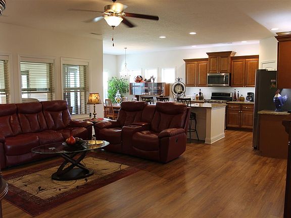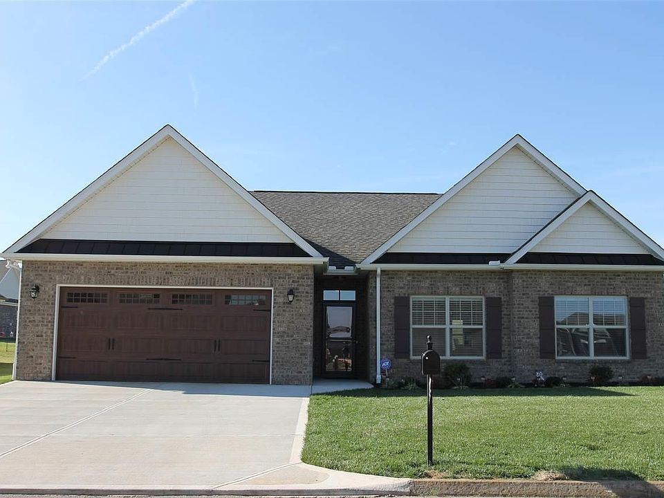 LIKE BRAND NEW!! Beautiful 3 bed 2 bath with 2 car garage all on one level!! Gorgeous open concept living, kitchen and dining room! Desired split bedroom floor plan, upgraded vinyl plank flooring, virtually life-proof! Lots of nice details, granite tops, soft-close maple cabinetry and plenty of it, recessed LED lighting so it's light and bright, HUGE kitchen island and corner pantry! Double oven and gas range remain with all of the other upgraded stainless steel Whirlpool appliances. 9 ft ceilings, laundry room right off the master bath for convenience, master bath has double vanities, a HUGE tiled shower and separate potty room. Master closet goes on for days! Outside features brick front and sodded yard. Adorable new subdivision, come take a look today!!