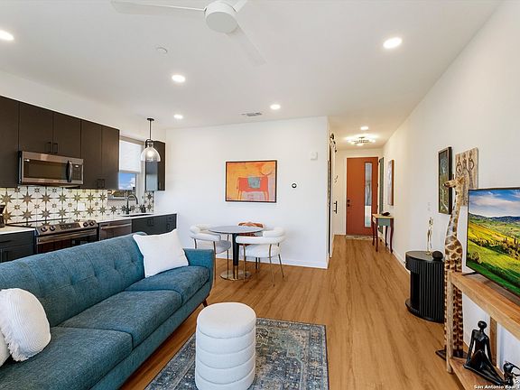 Top Floor, Corner unit with Private balcony, Additional side Windows to bring in the light, Custom window coverings included, and there's an Elevator in the complex! Soft-close cabinets, Washer/Dryer combo, Samsung Appliances, Quartz Counter Tops, Water softener. Open Floorplan with plenty of light. Smart Home with Ring Doorbell and Programmable Thermostat. This complex is DOG friendly with Dog Park and even a Pet Bathing Station! Resort style pool, Entertainment area with double Gas Grills, Big ScreenTV, Dining and Seating area. Walk to shopping, schools, Restaurants. Minutes to Gruene and downtown New Braunfels. Amazon Lockers, Assigned Parking plus additional parking outside the gated parking lot.
