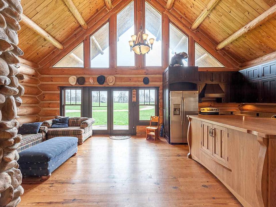A Hidden Paradise tucked on Harrodsburg Road, just .5 miles from Monroe County. All the warmth and character of a log home with modern features throughout. The grand wrap around front porch, with vaulted log ceiling welcomes you. A floor to ceiling cobblestone fireplace and wide plank pine floors steal the show in this one-of a kind home. Open kitchen with solid surface counters, oversized island and stainless appliances. Expansive Main Level Master Suite with enormous closets, vaulted ceiling, walk in tile shower, his and hers vanities and a private rear deck. Finished Walk-Out Basement features a full kitchen, full bath, Bedroom and Built-In entertainment corner. Property also features a Barn with garage and workshop, Shed and Pond. Bursting with character and sprawling space! New gutters installed December 2017. New logs on wrap around deck, fall 2017.