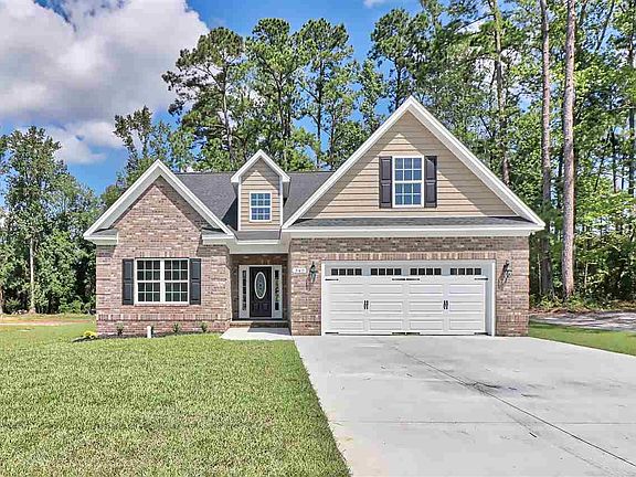 Custom All brick 4 bedroom/3 bath home located on a large 2 acre home site in the desirable Aynor community. Large Premium Lot with natural rear privacy buffer of mature southern pines and hardwoods.This Palmetto home plan features a spacious great room, 9’ flat ceilings, granite island kitchen, large bedrooms, multiple storage closets, laminate wood flooring, and a sprawling rear lawn. In addition to the granite counter tops, this upgraded kitchen features all stainless appliances, solid wood 5-piece cabinetry, with soft close dove-tailed drawers and doors. Enjoy your meals at the spacious island or at the breakfast nook. The large master bedroom and bath features a garden soaking tub, over-sized shower, high-quality brass body delta valves and faucets, granite vanity tops, double sinks, and two enormous master walk-in closets. Exterior features include a carriage style automatic garage door with glass window for natural light, quiet belt drive garage door opener, and maintenance free vinyl shake gables and dormers, brick soldier course and quoined corners, over-sized concrete double drive, entry sidewalk, and more! Call today to view this lovely home!
