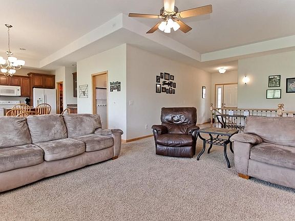 Schulte built ranch, large corner lot in town .48 per assessor! Very functional kitchen, center island with breakfast bar, walk in pantry (great space here!), kitchen dining combo looks into living room, 10' ceilings. Built in shelving surrounds gas fireplace,3 bdrm on main, with master at other end. Master bath dual vanities, jetted tub. Main floor laundry, 3 stall garage! Lg rec room down, full bath and bdrm with walk in closet. Still offers large store room! Great house, and your new yard here!