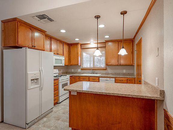 Move in ready with a NEW ROOF! Cul-de-sac location with convenient access to shopping. Bright and open home complete with wood accents and central heat/air. Beautiful updated kitchen with attractive cabinetry and pendant lighting over the breakfast bar. Cozy wood stove on a stone hearth and ceiling fans throughout. Open patio and fenced yard ideal for enjoying the summer evenings!