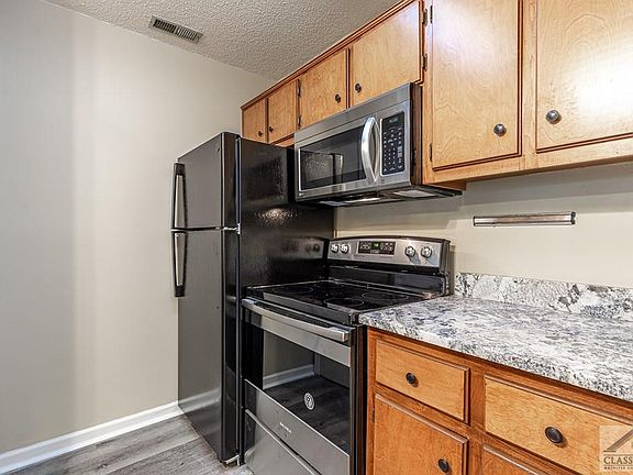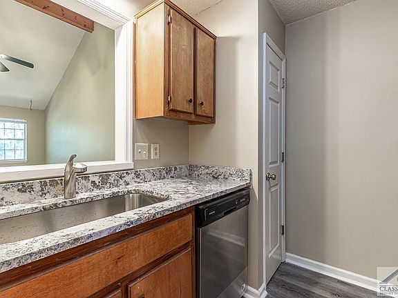 Completely renovated in 2021 and move in ready! This second story unit boasts a brand new HVAC, Water Heater, carpet, flooring, stainless steel kitchen appliances, granite countertops, garbage disposal, updated bathrooms, and fresh paint throughout. Perfect layout featuring a spacious living area with a vaulted ceiling, two bedrooms with huge walk in closets, in unit washer and dryer, and a private back patio for entertaining. Milledge Place Condos are right on the bus line and feature brick exteriors, swimming pool, volleyball court, parking, covered bicycle parking, bus stop at entrance & sidewalks to UGA and downtown Athens. Roofs will be replaced on A,B&C buildings in the next year or two & change color from green to black. Doors have been painted black & shutters will be too.