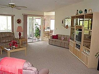 Expanded McKenzie floor plan features two large bedrooms and two baths, kitchen with nook, huge screened lanai, and 2-car garage. Roof is less than 10 yrs new. New garage door opener motor. All furniture and TV's available (some exclusions/see MLS attachment). Community w/ Resident Age Requirement. Amenities include: lawn maintenance, clubhouse, private golf course, HTD pool, tennis courts, fitness center, planned activities, & much more. Ask about availability of one year FREE golf through the golf club.