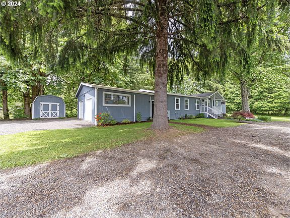 Meticulously maintained 1994 manufactured home with shop, garage and carport on 1.15 park-like acres with stunning views overlooking the Nehalem River. This 1620 square foot three bedroom, two bath home features substantial updates throughout starting outside with fresh landscaping along with mature trees and yard maintenance, new exterior paint on house and decks, new front door, newer roof on the main house, built-in outdoor BBQ with granite, firepit and back patio/deck to sit and enjoy the views of the river and potential for path down to develop a spot by the river for swimming, fishing and other water recreation. Toolshed with interior shelves to hold all that is needed to keep the property looking amazing. Inside not a detail was missed with updated laminate hardwood flooring, new rubbed bronze hardware & fixtures, interior paint & wall accents, sliding barn door to third bedroom, both bathrooms updated as well. Open living room and dining room with vaulted ceilings, kitchen with new appliances, spacious pantry, plenty of cabinets and island for storage and skylight for plenty of natural light. Primary bedroom suite features walkthrough double closet with custom shelving, ceiling fan and full bathroom with soaking tub and separate shower, vanity with plenty of light as well as skylight. Stylish barn door on 2nd bedroom for versatile uses of bedroom or office. 3rd bedroom and full bathroom updated as well. Newer washer/ dryer stay in the laundry room with built-in desk leading out to the two-car oversized garage. Electric heat pump and furnace to keep home comfortable all year long. Generator ready. Fiber Optic network installed for fast, reliable, work-from-home internet. NW Natural Gas at the street for the possibility of converting to alternative to electricity for heating and appliances. Just inside Vernonia city limits with public water/ sewer. Close to Vernonia Lake and Linear Trails. Come enjoy the country and small town living today!