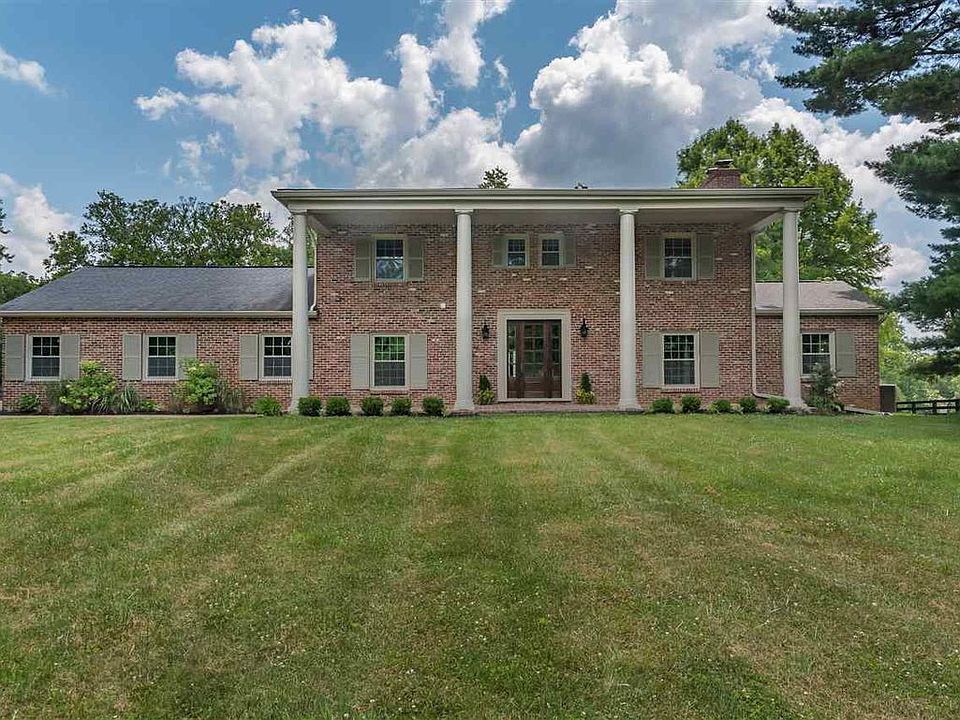 This Eastside estate is an extraordinary find. The brick colonial home which sits on 12 manicured acres has been tastefully updated! The gourmet kitchen is a chef's dream with beautiful quartz counter tops, custom cabinetry, a butler's pantry, and Wolf appliances. The stunning entryway leads to an elegant winding staircase complete with a beautiful hand carved banister. New flooring throughout the home includes hardwood floors on the main level and plush carpets in the top floor bedrooms. The finished basement includes a convenient kitchenette to round out this amenity filled home. The expansive land includes a full size basketball court and a stocked pond. The large barn has plenty of room for any equestrian and/or storage needs. Four spacious apartments attached to the barn could serve as guest quarters or income producing rentals.