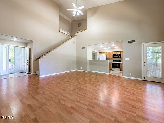 Welcome to this multi-level townhouse located in the heart of Flagstaff! This 3 BD, 2.5 BR home offers a spacious living room with shared space for a dining nook. Enjoy your morning coffee or evening cocktails on your own private deck, overlooking a fully fenced backyard - perfect for your furry friends to run and play. The great room on the main level features vaulted ceilings, a large living room, and a kitchen with all the amenities. Upstairs, you'll find the primary bedroom which includes a spacious closet, soaking tub, and separate shower. Two additional bedrooms are also located upstairs with a shared bathroom. This townhome boasts convenience, located near shopping, grocery stores, and NAU. Don't miss out on the opportunity to call this amazing townhouse your own. It'll go quickly!