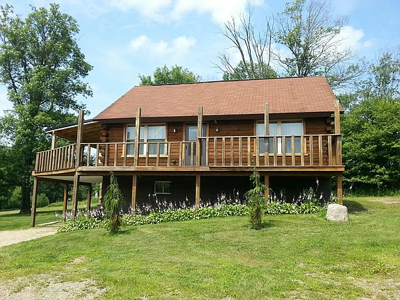 Totally remodeled log cabin with FINISHED LOFT & finished basement. T & G wood interior, new plumbing, new wiring, new flooring, laundry room, all appliances, many unique features, quonset hut building w/ 220 electric & water, 2 car garage, 1 1/2 acre lot