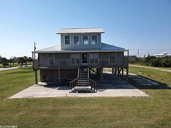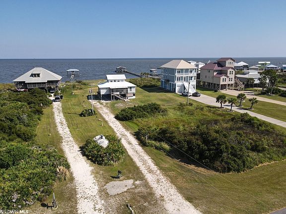 Excellent Bay front home right close to the end of Fort Morgan peninsula for quick access to the Gulf of Mexico. This home has lots of potential. It does need some work on the top floor - duct work, insulation, and sheetrock, pier also needs to be built back. Must see for all bay lovers and fisherman. The sunsets and water views are spectacular. It has been used only as a second home / fishing getaway but has tons of potential.