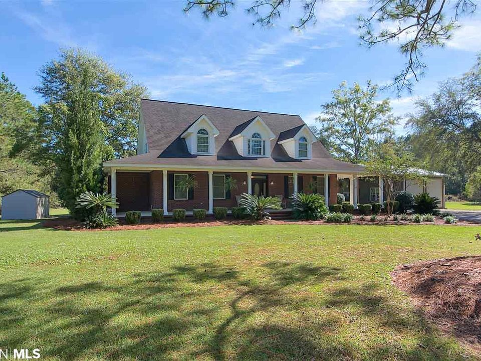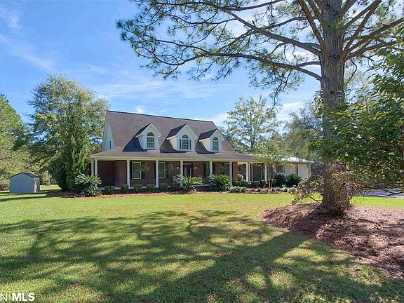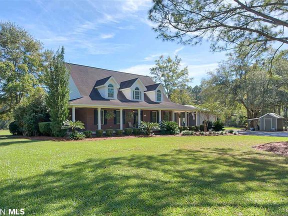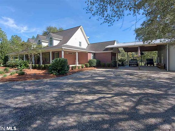 Welcome to this PICTURESQUE and UNIQUE ESTATE!!! This is Truly Country Living at its best. CHARMING SOUTHERN BRICK HOME that sits on 16 ACRES of breathtaking property which includes a large stocked pond, fenced in swimming pool, 2 storage buildings and a 40x48 metal building! After entering the property through the Custom Built Iron Gate, just simply driving down the driveway you can feel the warmth of this property surrounded by beautiful mature trees and foliage. The house sits far from the road for lots of privacy and this Southern home welcomes you as you approach the large front porch, with lots of room for Outdoor Furnishings to enjoy your morning coffee as you watch the sunrise! This 4 bedroom, 2 bath , 2 half baths, offers so many of your favorite features, from high ceilings in Den w/Fireplace and French Doors to the Covered Back Porch and Saltwater Pool, Large Kitchen w/ Breakfast Area, Breakfast Bar, New Stovetop, New Granite Countertops , Stainless Appliances, Walk in Pantry and Built in Desk, Separate Formal Dining Room and an Incredible Master Bedroom w/ Fireplace and Renovated Master Bath w/Walk in Tile Shower with dual showerheads, Double Vanities, Jetted Garden Tub and 2 walk in Closets. THIS PROPERTY IS SO PEACEFUL and PERFECT FOR ENTERTAINING FRIENDS AND FAMILY with LOTS OF ROOM TO ROAM. Perfect for HORSE OR PET LOVERS. You can build your own "SHE SHED" and "Chicken House" ! Without approval of an HOA. And it's only minutes from the Beach Expressway, Hwy 59 and I-10. So, you can live in the Country and still have an easy commute to Mobile or Pensacola! Call Today for your private showing!