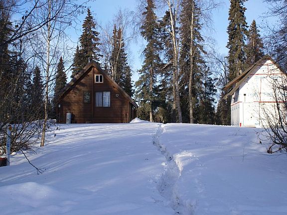Gate Creek Lakeside Cabin off Petersville Rd! 1 bed with loft, bathroom (has septic & well, never used not hooked up)Lake is stocked, winter mountain views, snow machine heaven, trails galore, woodstove, propane heat. Awesome recreational cabin. Unfinished '' toy garage'' holds up to 4 snowmachine's (needs siding) w/ full loft. Great place to retreat to every weekend