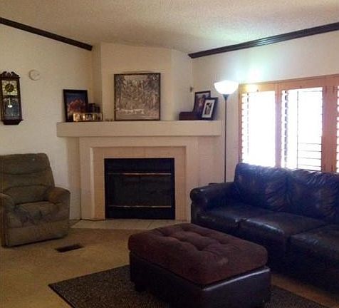 Perfect opportunity for first time homebuyer, small family, or retiree! This 3 bedroom 2 bath home is located in Creekside, an all age family park in South Corona. You'll enjoy the relaxing covered front porch as you enter the living room which has a gas fireplace for chilly evenings. There is a built in china hutch in the dining area, and the kitchen has newer appliances and laminate floor. The indoor laundry room has tiled flooring. You'll love the master bedroom! It has a wall to wall closet with mirrored doors, and a full bath with oval soaking tub. There is a private deck off the master bedroom with views of the hills. Upgrades include ceiling fans, shutters, dimensional roof, and custom paint. This home has central heat and air, ceiling fans, mini blinds, covered carport, and a storage shed. There is also a swamp cooler that will stay if buyer desires. The community offers ample guest parking, clubhouse, pool, spa, pool tables, gym, and even a meeting room. There is also RV parking for an additional cost. Private and quiet location in the park, and conveniently located off the 15 freeway. Only one block to the restaurants, golf, and shopping at Dos Lagos. Plan your visit today!